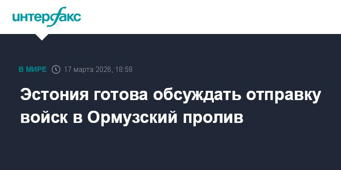 Москва. 17 марта. INTERFAX.RU - Эстония готова обсуждать с США отправку своих войск в Ормузский пролив, заявил министр иностранных дел Маргус Цахкна.