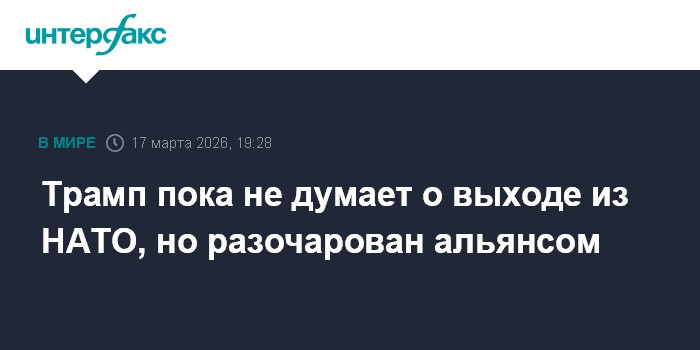 Москва. 17 марта. INTERFAX.RU - Президент США Дональд Трамп во вторник заявил, что имеет смысл подумать о судьбе НАТО, но пока он не думал о том, чтобы выходить из альянса.