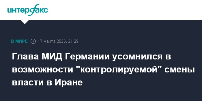 Москва. 17 марта. INTERFAX.RU - Возможность обеспечения контролируемого Западом процесса смены власти в Иране представляется нереалистичной идеей, заявил во вторник глава МИД Германии Йоханн Вадефуль.