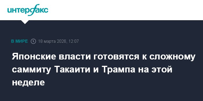 Москва. 18 марта. INTERFAX.RU - Ситуация вокруг блокированного Ормузского пролива может серьезно осложнить запланированный на этой неделе визит премьера Японии Санаэ Такаити в Вашингтон, сообщает в среду Financial Times (FT) со ссылкой на источники.