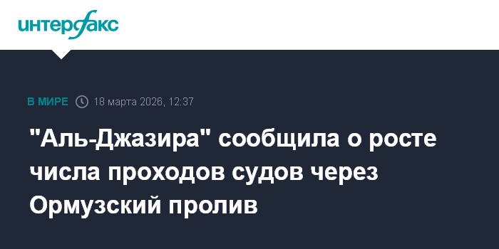 Москва. 18 марта. INTERFAX.RU - Количество судов, проходящих через Ормузский пролив, в последние дни несколько увеличилось, сообщил телеканал "Аль-Джазира" со ссылкой на данные мониторинга морского судоходства.