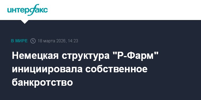 Немецкая структура "Р-Фарм" инициировала собственное банкротство