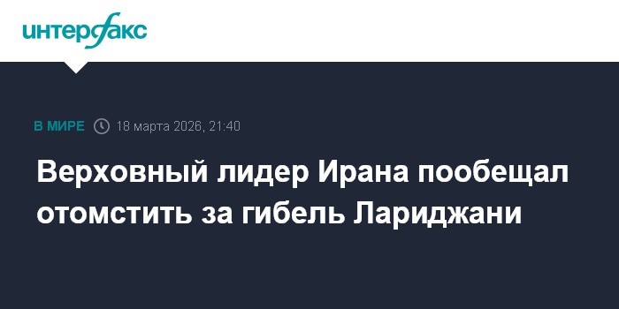 Москва. 18 марта. INTERFAX.RU - Верховный лидер Ирана аятолла Моджтаба Хаменеи предупредил, что смерть секретаря Высшего совета нацбезопасности Ирана Али Лариджани в ходе удара с воздуха не останется без ответа, сообщает в среду The Guardian.