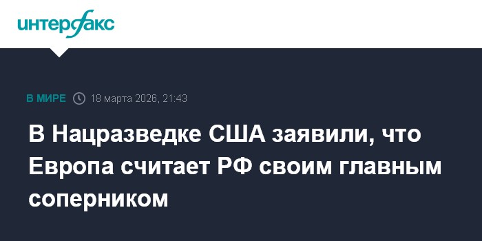 Москва. 18 марта. INTERFAX.RU - Основная часть стран Европы воспринимает Россию как своего главного соперника, говорится в опубликованном в среду ежегодном докладе Нацразведки США.