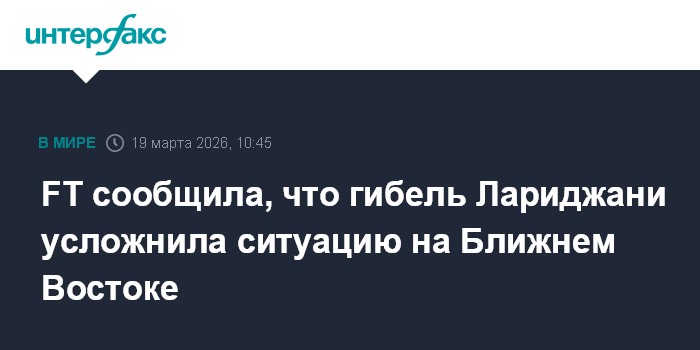 FT сообщила, что гибель Лариджани усложнила ситуацию на Ближнем Востоке