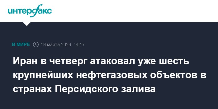 Москва. 19 марта. INTERFAX.RU - Иран за день атаковал в общей сложности шесть крупнейших объектов нефтегазовой промышленности стран Персидского залива в ответ на израильскую бомбардировку его газового месторождения "Южный Парс", сообщает телеканал "Аль-Джазира".
