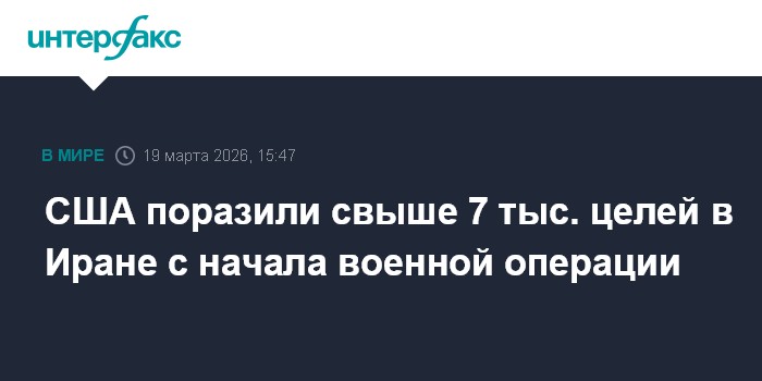 Москва. 19 марта. INTERFAX.RU - Американские войска в ходе операции в Иране уже уничтожили более семи тысяч целей, заявил в четверг на пресс-конференции министр войны США Пит Хегсет.