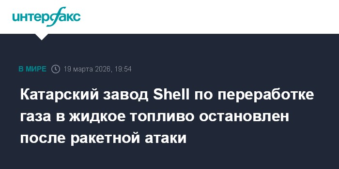 Москва. 19 марта. INTERFAX.RU - Завод по производству жидкого синтетического топлива Pearl GTL в катарском Рас-Лаффане, крупнейший в мире, приостановил работу после иранского ракетного удара, сообщает владеющий объектом британо-нидерландский нефтегазовый гигант Shell.