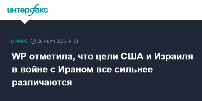 "Многочисленные чиновники США, Израиля, стран Ближнего Востока, а также знакомые с темой парламентарии заявляют, что спустя почти три недели после начала конфликта цели разнятся у США, которые видят перед собой историческую возможность быстрой военной победы с умеренными экономическими потерями, и Израилем с более значительными планами свергнуть иранский режим, который хотели убрать 40 лет", - информирует WP.
