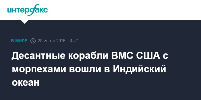 Москва. 20 марта. INTERFAX.RU - Американская амфибийно-десантная группа в составе трех десантных кораблей с морской пехотой на борту вошла в Индийский океан и направляется в Аравийское море в зону ответственности Центрального командования ВС США на Ближнем Востоке (CENTCOM), сообщила Sunday Guardian.