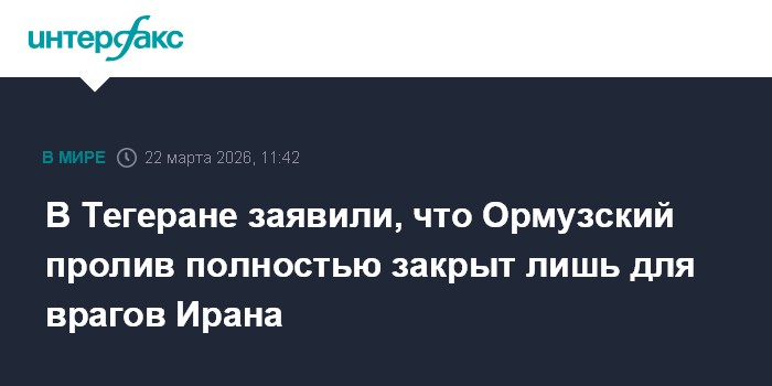 Москва. 22 марта. INTERFAX.RU - Иран полностью перекрыл движение через Ормузский пролив лишь для судов, связанных с врагами страны, заявил иранский представитель в Международной морской организации Али Мусави.
