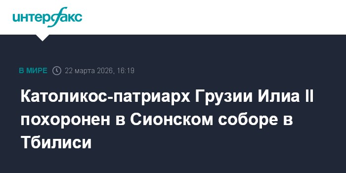 Москва. 22 марта. INTERFAX.RU - Католикос-патриарх Грузии Илиа II похоронен в воскресенье в Сионском соборе в Тбилиси, где покоятся еще восемь патриархов грузинской Церкви.