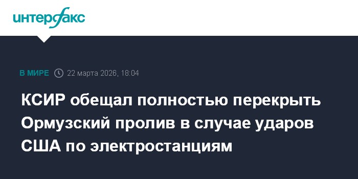 Москва. 22 марта. INTERFAX.RU - Командование Корпуса стражей Исламской революции (КСИР) заявило о готовности полностью перекрыть движение судов через Ормузский пролив, если США нанесут удары по иранским электростанциям, сообщает The Guardian.