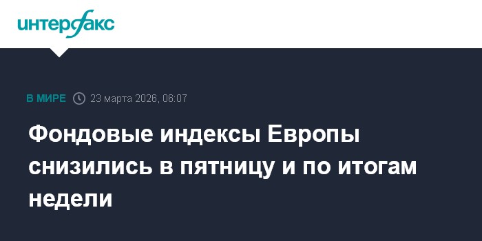 Москва. 23 марта. INTERFAX.RU - Европейские фондовые индексы снизились в пятницу и завершили в минусе третью неделю подряд.