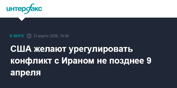 Москва. 23 марта. INTERFAX.RU - США планируют добиться соглашения об урегулировании конфликта с Ираном к 9 апреля, сообщает в понедельник Ynet со ссылкой на источник.