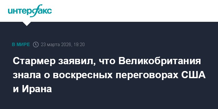 Москва. 23 марта. INTERFAX.RU - Великобритания была в курсе переговоров между США и Ираном, заявил в понедельник премьер-министр Кир Стармер, комментируя заявление американского президента Дональда Трампа о состоявшихся контактах по урегулированию конфликта.