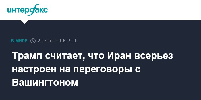 Москва. 23 марта. INTERFAX.RU - Иран серьезно настроен вести переговоры с США, заявил американский президент Дональд Трамп.