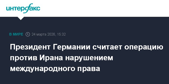 Москва. 24 марта. INTERFAX.RU - Удары США и Израиля по иранской территории нарушают нормы международного права, заявил во вторник президент Германии Франк-Вальтер Штайнмайер.