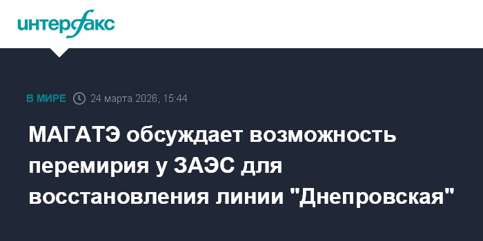 Москва. 24 марта. INTERFAX.RU - Представители МАГАТЭ начали обсуждать с Москвой и Киевом возможность установить режим локального прекращения огня в районе Запорожской АЭС для ремонта поврежденной линии электроснабжения "Днепровская", сообщил гендиректор МАГАТЭ Рафаэль Гросси. Об этом агентство сообщило в соцсети.