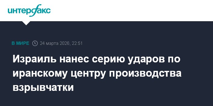 Москва. 24 марта. INTERFAX.RU - Израильские ВВС во вторник нанесли бомбовые удары по центру производства взрывчатых веществ в иранском городе Исфахане, заявили в Армии обороны Израиля (ЦАХАЛ).