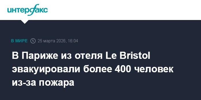 Москва. 25 марта. INTERFAX.RU - В Париже днем случился пожар в пятизвездочном отеле Le Bristol, который находится неподалеку от Елисейского дворца, из здания эвакуировали более 400 человек, сообщает BFMTV.