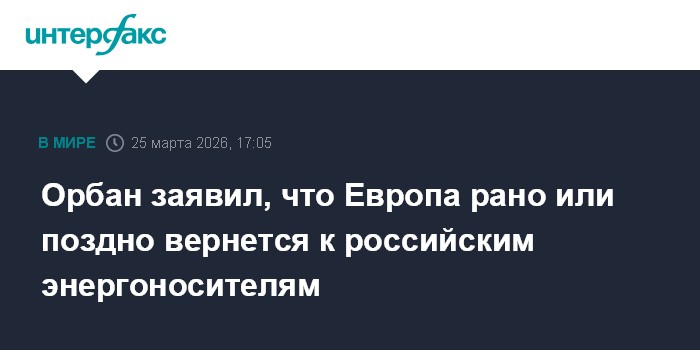 Москва. 25 марта. INTERFAX.RU - Венгерский премьер-министр Виктор Орбан выразил в среду мнение, что Евросоюз неизбежно вернется к закупкам энергоносителей из РФ.