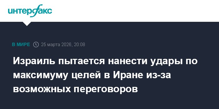 "Два израильских чиновника и два человека, знакомых с темой, сказали, что в связи со все возрастающей вероятностью переговоров США и Ирана израильские военные атакуют как можно больше целей, беспокоясь о скором прекращении войны", - информирует издание.