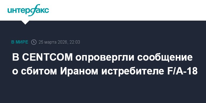 Москва. 25 марта. INTERFAX.RU - Центральное командование ВС США на Ближнем Востоке (CENTCOM) в среду опровергло сообщение о том, что иранские средства ПВО сбили американский истребитель F/A-18.