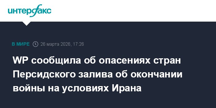 Москва. 26 марта. INTERFAX.RU - Страны Персидского залива опасаются поспешного урегулирования конфликта вокруг Ирана на условиях Тегерана и выступают за решительное прекращение войны военными или дипломатическими методами, сообщает в четверг The Washingtom Post (WP).