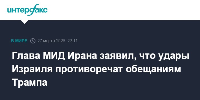 Москва. 27 марта. INTERFAX.RU - Глава МИД Ирана Аббас Аракчи заявил, что атаки Израиля в пятницу являются нарушением обещаний президента США Дональдом Трампом, согласно которым энергетические объекты Ирана не будут подвергаться атакам, пока Тегеран ведет диалог с Вашингтоном для урегулирования ситуации.