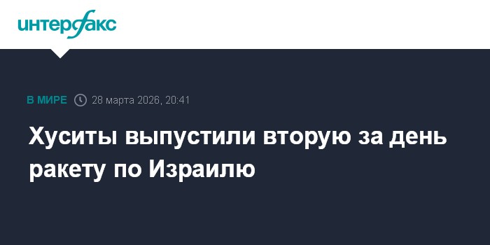 Москва. 28 марта. INTERFAX.RU - Йеменские хуситы запустили вторую за день ракету по Израилю, сообщает CNN.