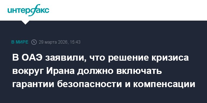 В ОАЭ заявили, что решение кризиса вокруг Ирана должно включать гарантии безопасности и компенсации