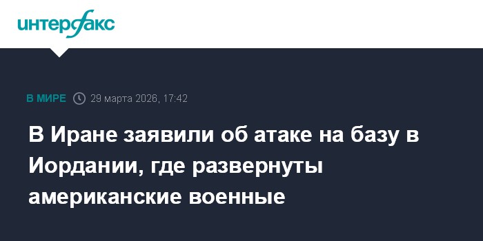 Москва. 29 марта. INTERFAX.RU - Иранские военные в воскресенье объявили, что нанесли удар по авиабазе Муваффак Салти в Иордании, где размещены войска США, сообщает Al Jazeera.