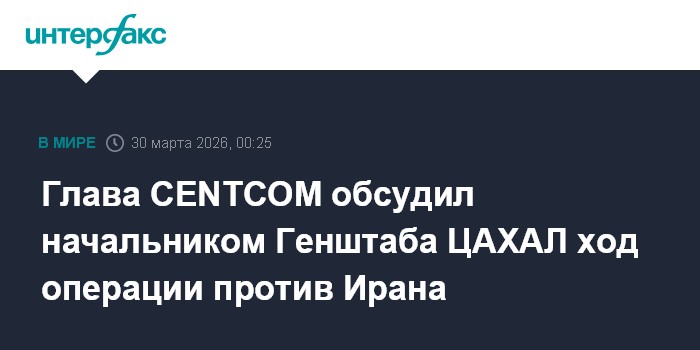 Глава CENTCOM обсудил начальником Генштаба ЦАХАЛ ход операции против Ирана