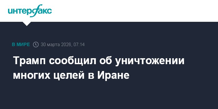Москва. 30 марта. INTERFAX.RU - Президент США Дональд Трамп заявил, что ВС США нашли и уничтожили многие объекты в Иране.