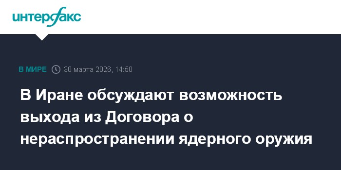 Москва. 30 марта. INTERFAX.RU - Парламент Ирана обсуждает возможность выхода из Договора о нераспространении ядерного оружия (ДНЯО), сообщил в понедельник представитель МИД Ирана Эсмаил Багаи.