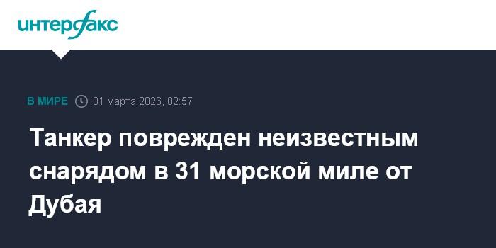 Москва. 31 марта. INTERFAX.RU - Попадание неизвестного снаряда вызвало пожар на танкере, находящемся в 31 морской миле к северо-западу от Дубая, сообщило Управление морских торговых операций Великобритании (UKMTO).