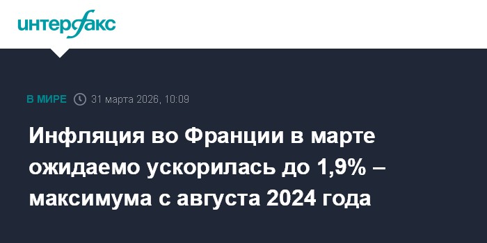 Таким образом, инфляция во Франции ускорилась по сравнению с 1,1% в феврале и стала максимальной с августа 2024 года.