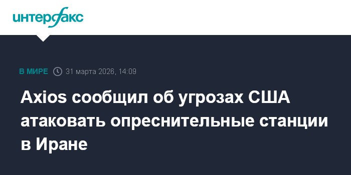 Москва. 31 марта. INTERFAX.RU - Власти США используют угрозы разрушить опреснительные станции в Иране, чтобы склонить его правительство к переговорам, решения об ударах по таким объектам пока нет, сообщает Axios со ссылкой на высокопоставленного сотрудника американской администрации.