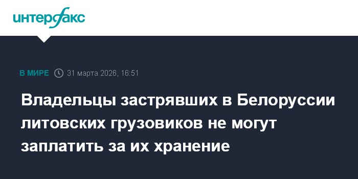 Москва. 31 марта. INTERFAX.RU - Владельцы части застрявших в Белоруссии литовских грузовиков не могут оплатить услуги их хранения на спецстоянках из-за санкций и, соответственно, их вернуть, заявил агентству ELTA президент Национальной ассоциации автоперевозчиков Литвы Linava Эрландас Микенас. Об этом сообщает LRT.