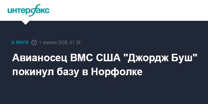 Москва. 1 апреля. INTERFAX.RU - Американский авианосец USS George H.W. Bush во вторник вышел с базы в Норфолке (штат Вирджиния), сообщили ВМС США.