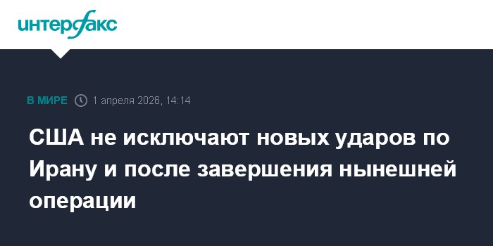 Москва. 1 апреля. INTERFAX.RU - В администрации США считают, что, поскольку уничтожить весь иранский потенциал в сфере ракет и беспилотников не получается, после завершения нынешней операции США в будущем могут возобновить удары по Ирану, сообщает Axios со ссылкой американского чиновника.