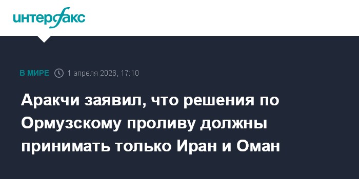 Аракчи заявил, что решения по Ормузскому проливу должны принимать только Иран и Оман
