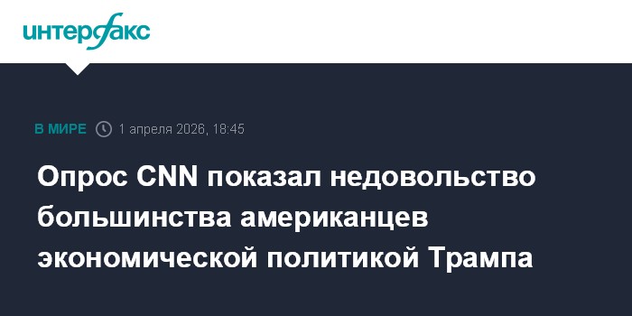Москва. 1 апреля. INTERFAX.RU - Всего треть американцев одобряет действия президента США Дональда Трампа в сфере экономики, что является рекордно низким показателем, свидетельствуют данные опроса CNN.