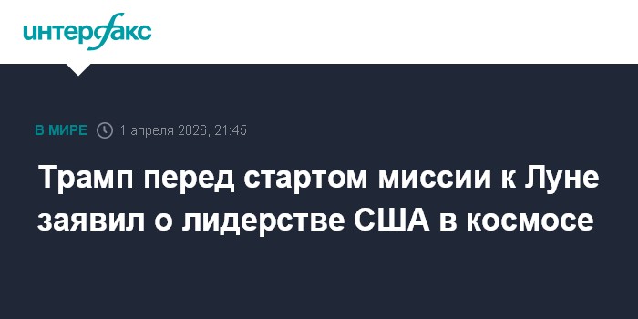 Москва. 1 апреля. INTERFAX.RU - Американцы уверенно лидируют в космической сфере, заявил в среду глава Белого дома Дональд Трамп перед стартом американской миссии к Луне.