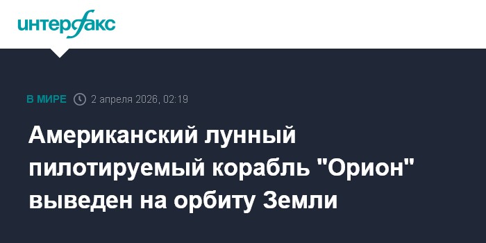 Москва. 2 апреля. INTERFAX.RU - Пилотируемый космический корабль Orion с четырьмя астронавтами на борту, стартовавший в четверг по московскому времени к Луне в рамках миссии Artemis II, успешно выведен на орбиту, сообщило NASA.