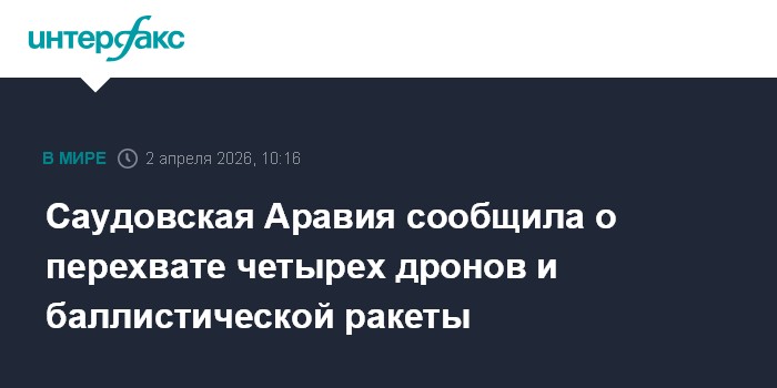 Москва. 2 апреля. INTERFAX.RU - В Минобороны Саудовской Аравии заявили об уничтожении четырех БПЛА за последние часы, сообщает агентство Saudi Press Agency.