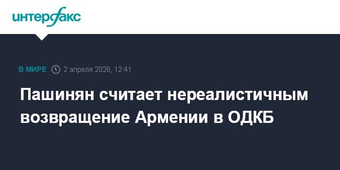 Москва. 2 апреля. INTERFAX.RU - Премьер-министр Армении Никол Пашинян назвал нереалистичным возвращение страны в Организацию договора о коллективной безопасности (ОДКБ).