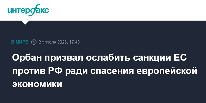 Москва. 2 апреля. INTERFAX.RU - Премьер-министр Венгрии Виктор Орбан заявил о необходимости отмены европейских санкций в отношении РФ ради спасения европейской экономики.