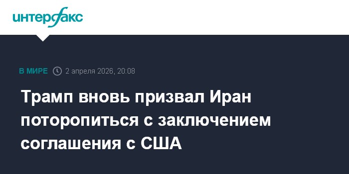 Москва. 2 апреля. INTERFAX.RU - Президент США Дональд Трамп в очередной раз призвал Тегеран заключить соглашение о прекращении огня, пока инфраструктура Ирана не разрушена окончательно.